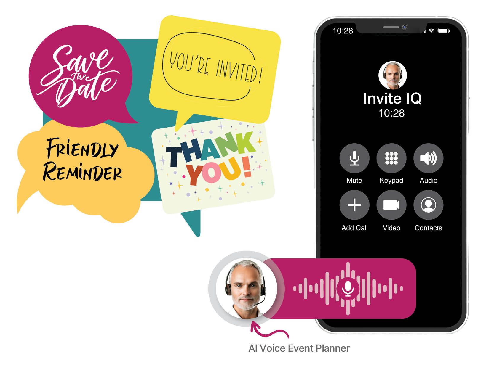 Invite IQ use a smart, natural sounding AI voice calls to invite your guests to any event, without lifting a finger.